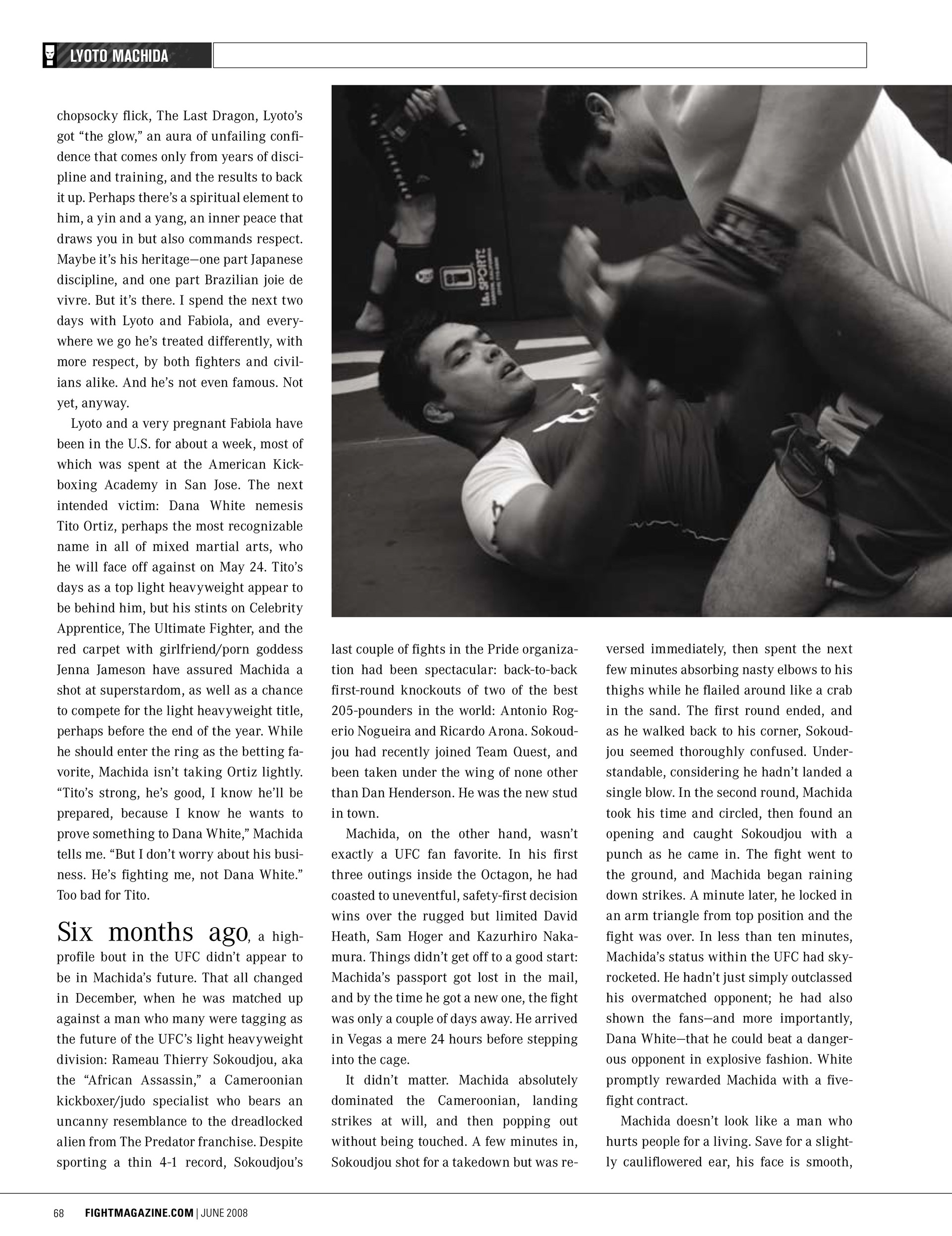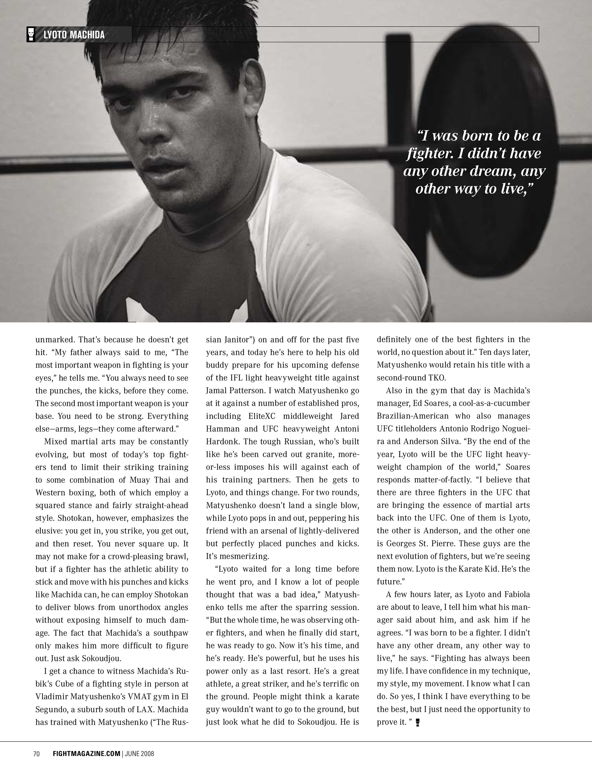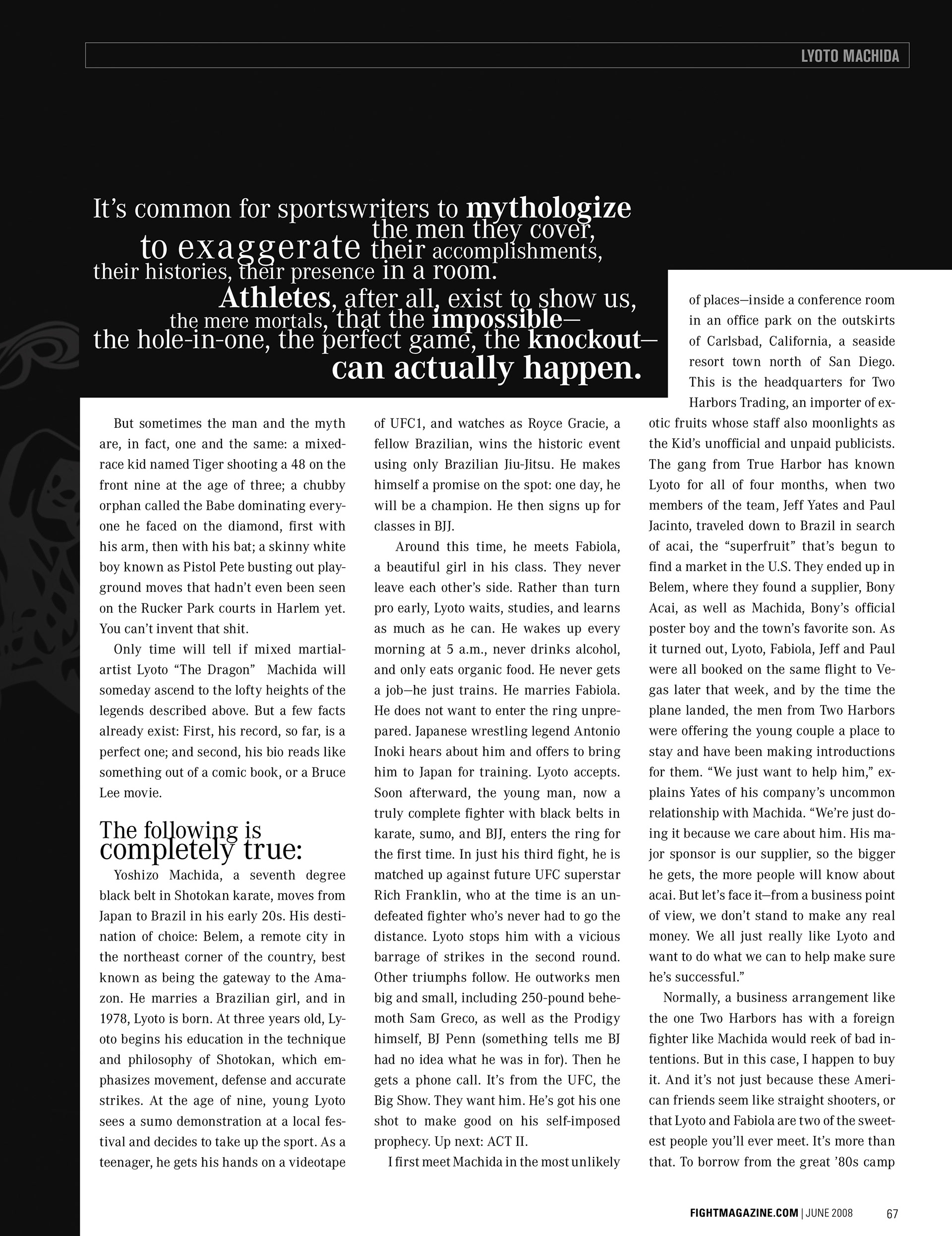 Profile of future UFC champion Lyoto Machida for FIGHT! magazine. June 2008. 3500+ words.